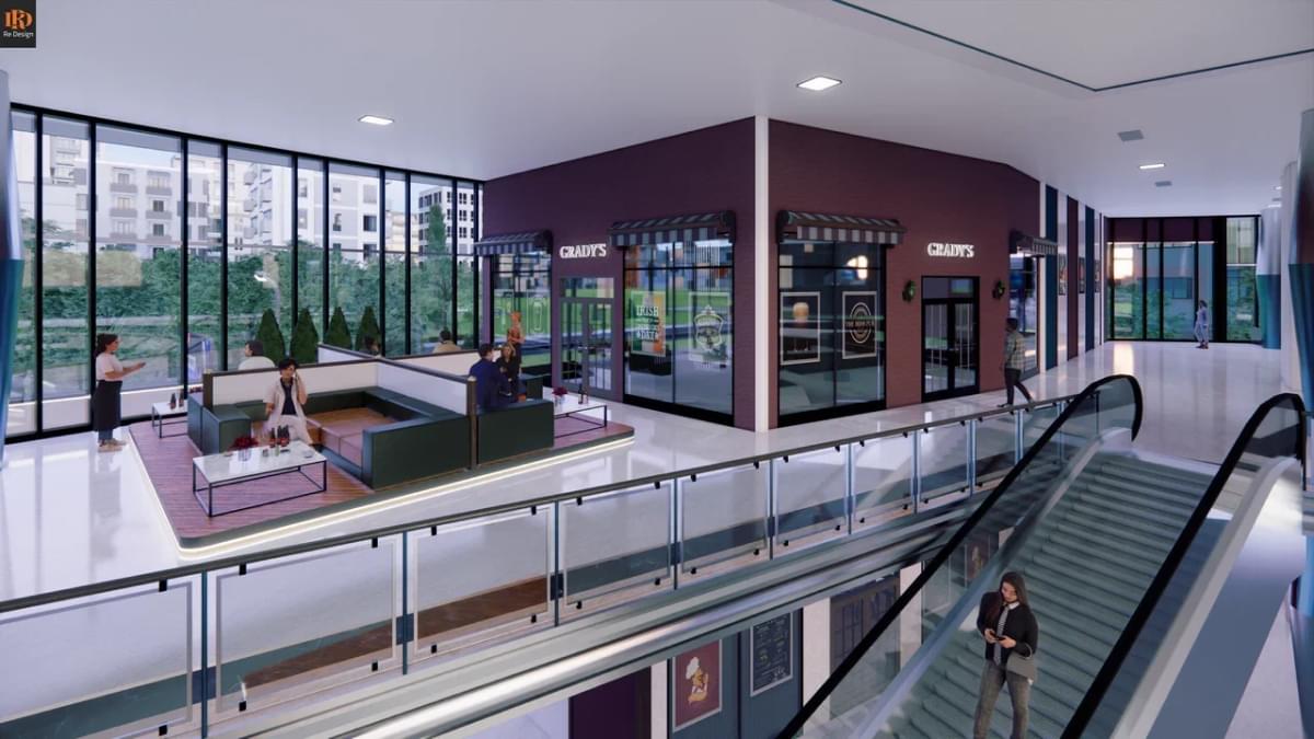 Ирландский бар “Grady’s” - 122 м2, детский клуб - 42 м2, пункт доставки маркет-плейса Ozon - 58 м2, филиал бюро “Regolit design” - 58 м2, офис администрации - 24 м2, технические и рекреационные зоны с балконом - 51 м2.