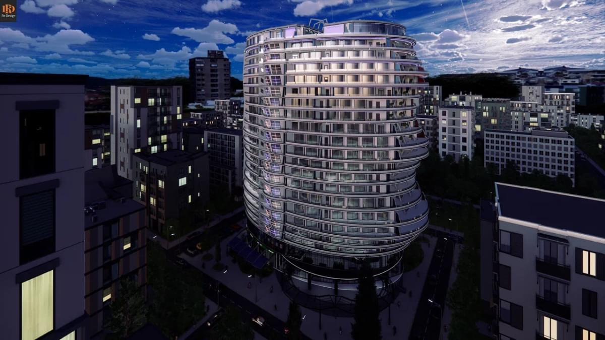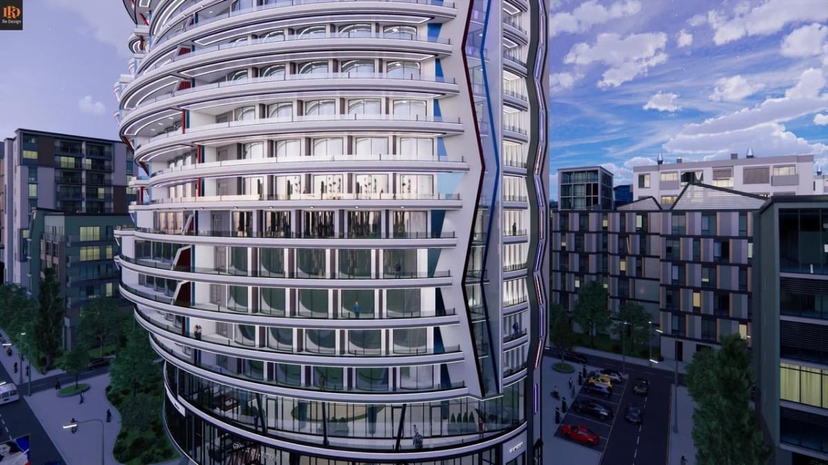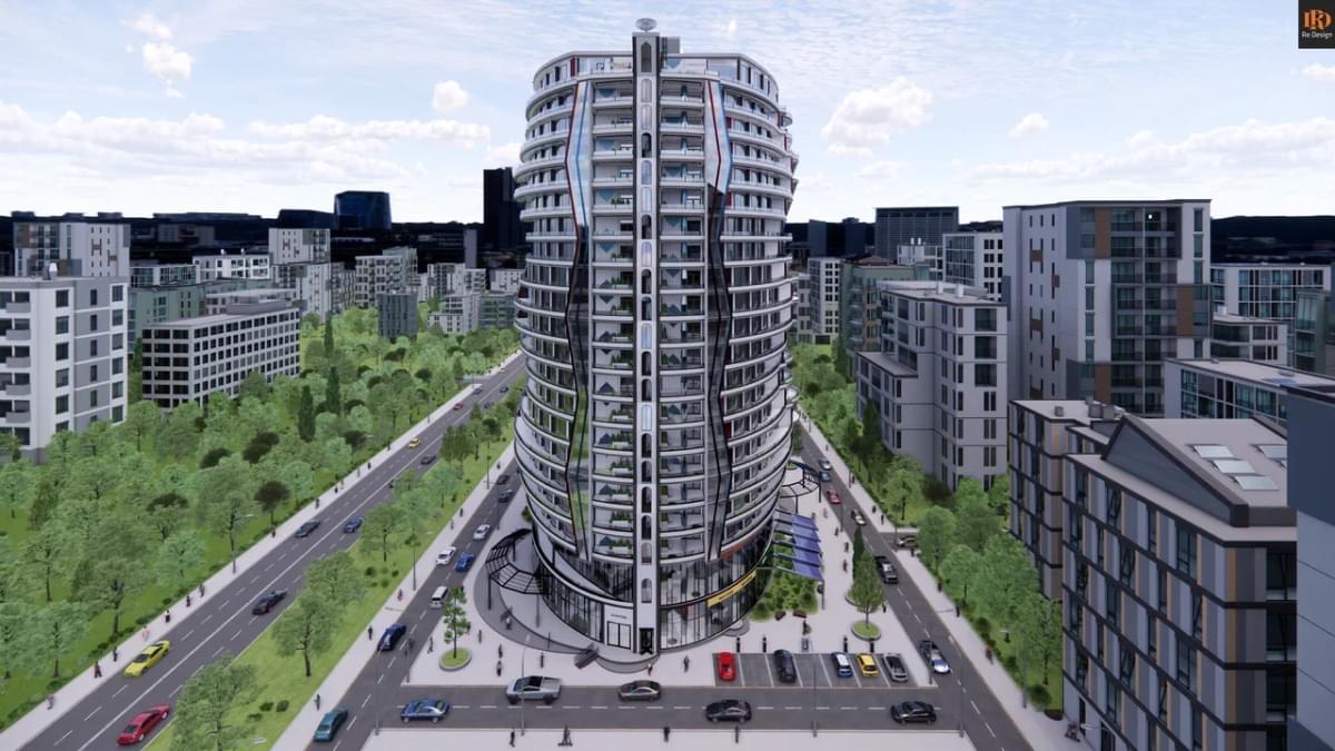 Асимметричное двадцатиодно этажное строение высотой 75,1 м, общей площадью 46 183 м2, на прилегающей территории от 4 350 м2. состоит из двух частей: “Grand Lobby” - общественной и “Private” - частной.