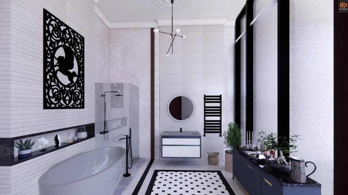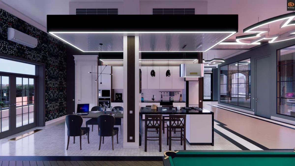 Дабы не прибегать к “общепринятой” унылой бежево-песочной повседневности от Ким Кардашян, мы решили смешать классическую черно-белую основу* и несколько ярких вставок в отделке стен, добавить ультрасовременнные элементы мебели, освещения и декора.