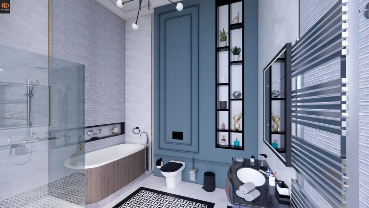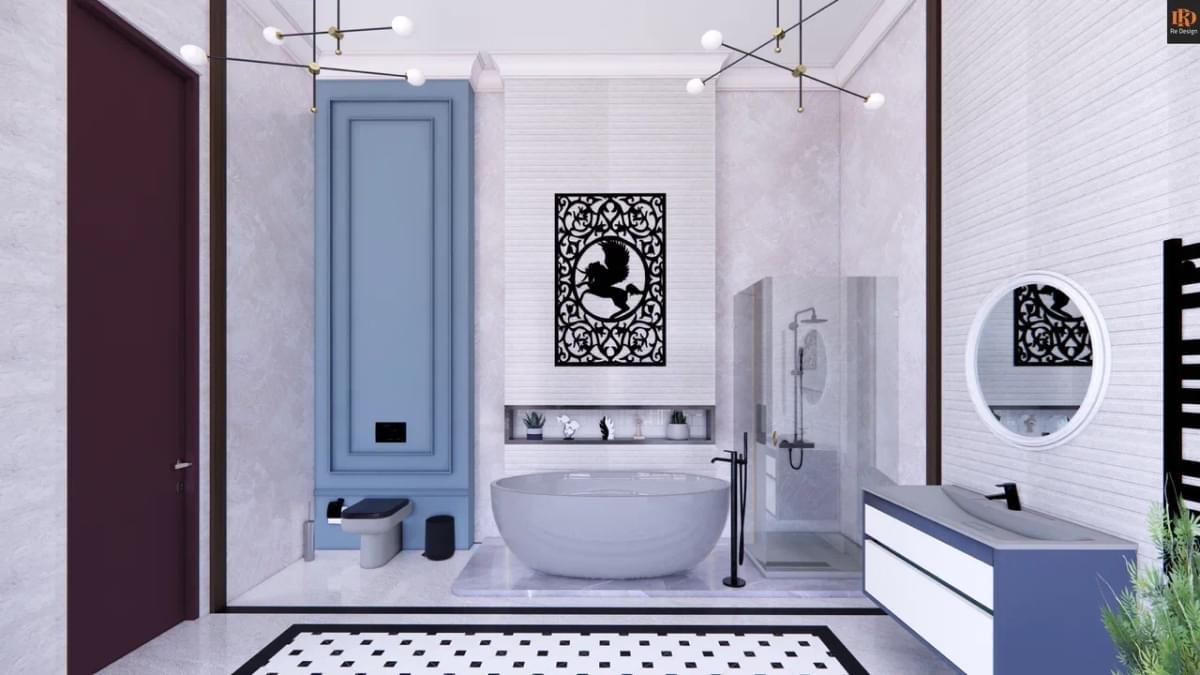 Для санузлов предусмотрено 2 вида фактурного керамогранита Porcelanosa, в качестве базы - плитка Эталон “Pro future”, комплекты влагостойкой мебели “Balteco”, душевые кабины* 90x90 см. и ванны с правильной геометрией из Кварила*.
