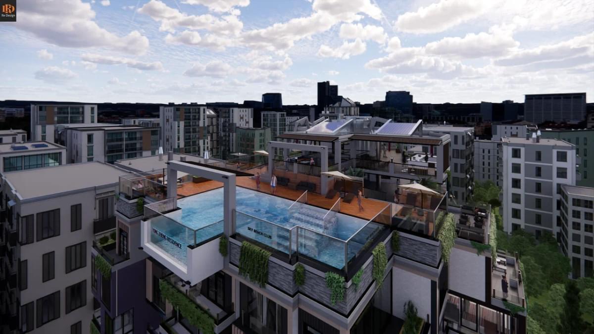 Четырнадцатый и пятнадцатый этажи занимает трехуровневый пентхаус с аква-центром “Sky Beach Club” 870 м2 и открытым бассейном 110,5 м2 глубиной 2м. (о которых мы расскажем более подробно в нашем портфолио).