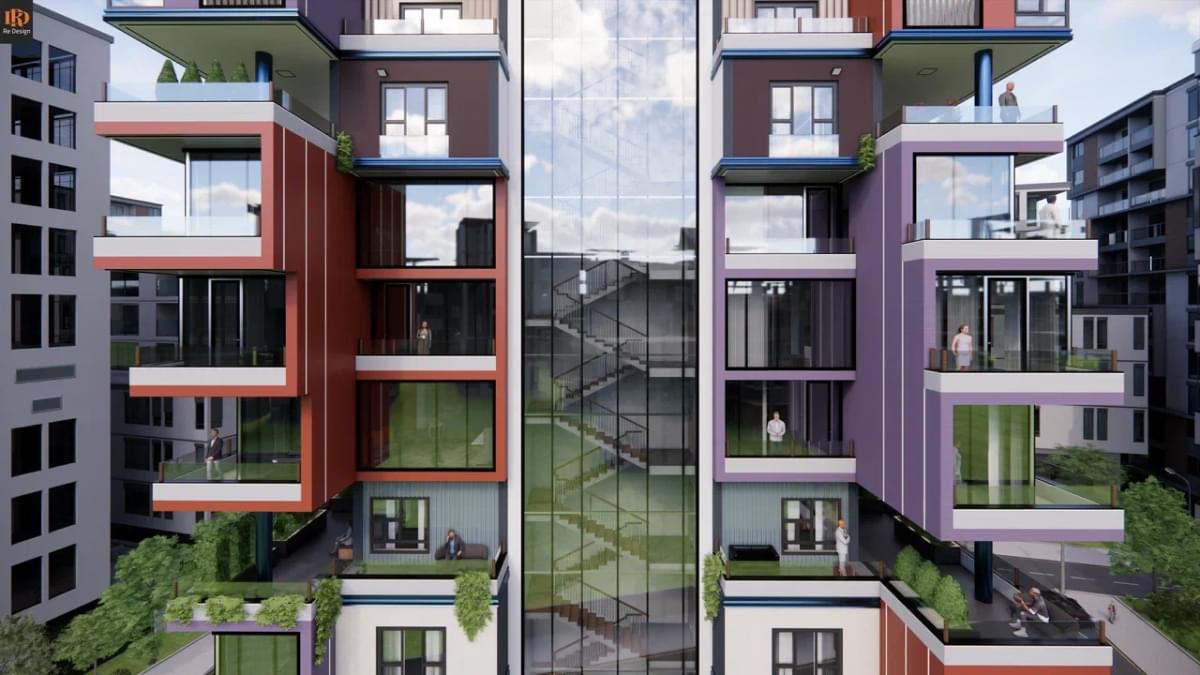 Трехкомпонентные сектора, восходящие и нисходящие каскады балконов & веранд на торцах здания, как зеркало цикличности и ритма, олицетворяют переменчивую вариативность исторического роста (или упадка) градостроительных тенденций - чтобы отразиться в стекле и бетоне, закладывая основу для переустройства прилегающих кварталов в будущем.