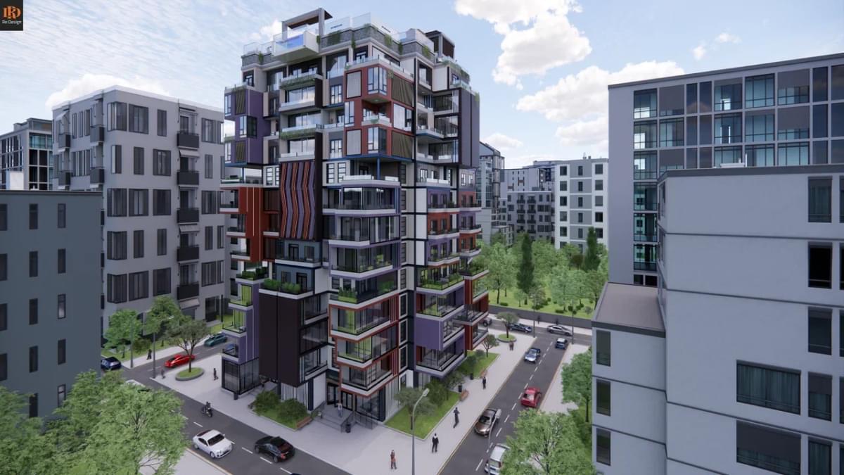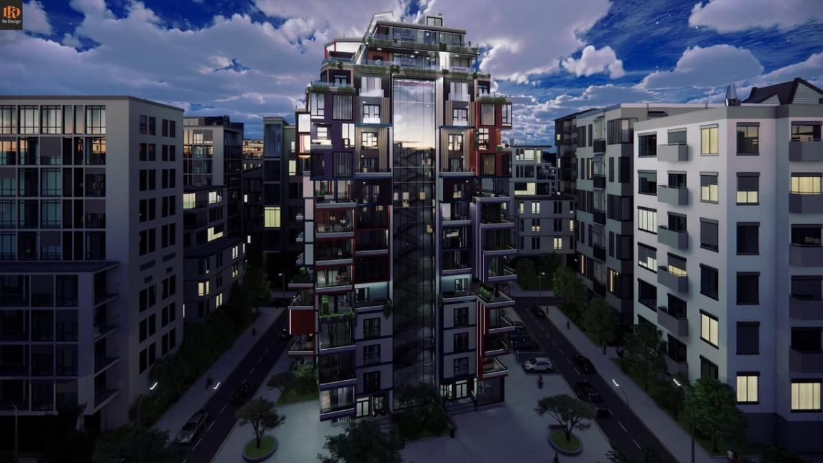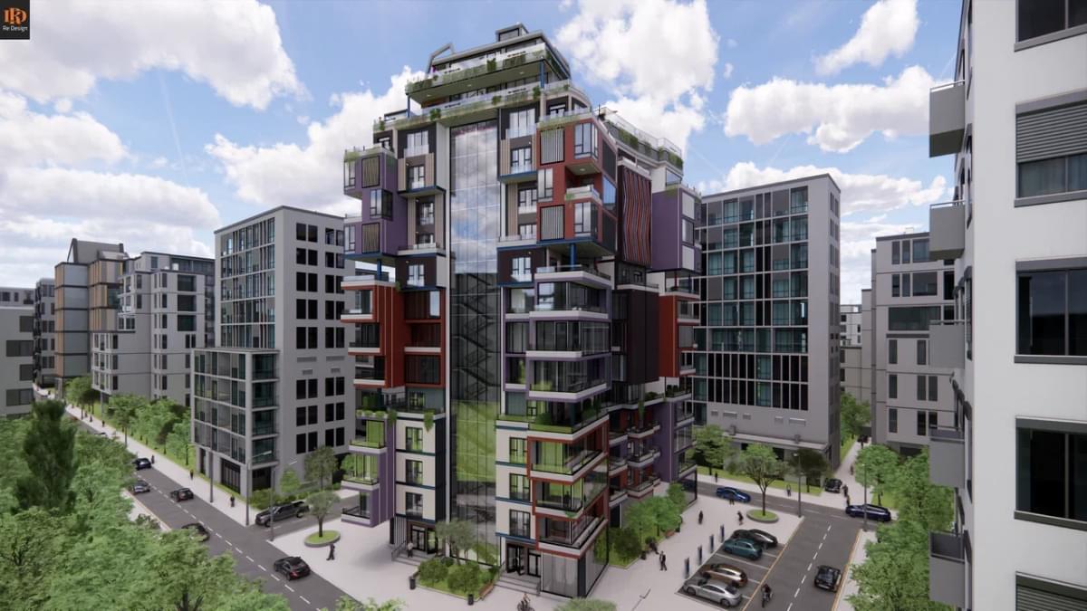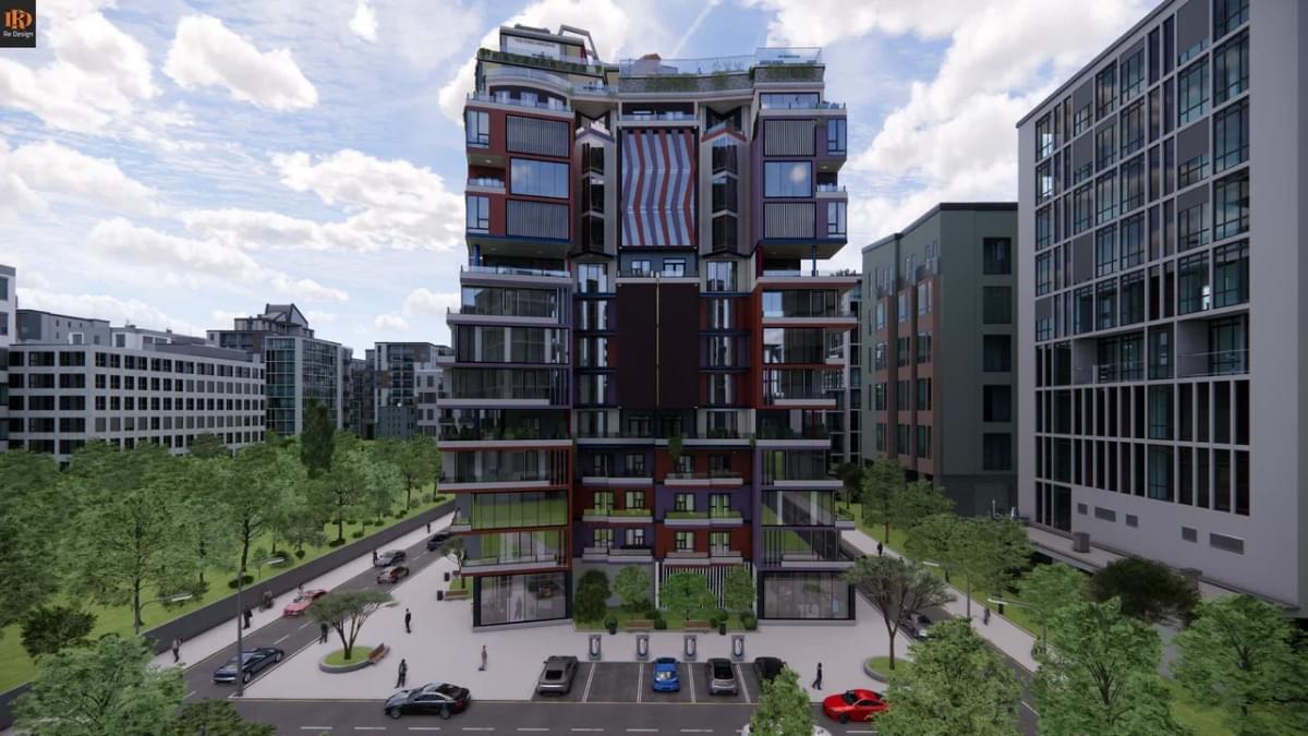 Современное пятнадцатиэтажное здание высотой 52,5 м. общей площадью 9 890 м2 спроектировано, как яркая региональная доминанта для плотной городской застройки и предполагает необходимый прилегающий участок 2 060 м2.